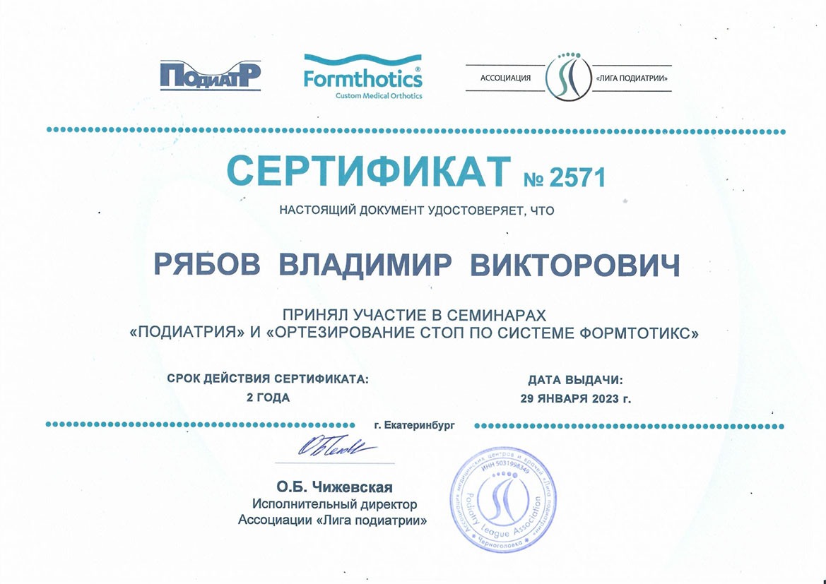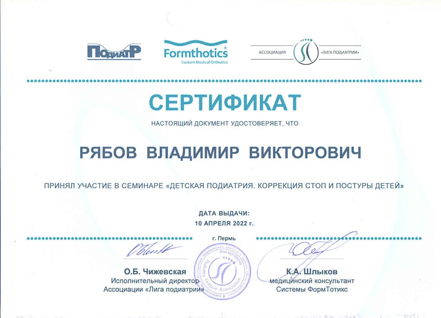 С 2011 по 2015 год являлся главным детским ортопедом г. Перми. Общий стаж работы по специальности 23 года. С 2023 г. является слушателем Краснодарского колледжа прикладной кинезиологии (Циванюк А.В., D.A.K.) и проходит регулярное обучение прикладной кинезиологии у Чернышовой Т.Н. (д.м.н., DIBAK, ICAK д.о.) г. Москва.